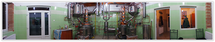 Pálinkafőző berendezéseink egylépcsős, aromatornyos gépek. A rendszerünk 1 db 300 l-es, 1db 250 l-es és 1 db 150 l-es lepárlóból áll. A berendezések gázzal üzemelnek és a füstcsövön távozó hulladékhőt használjuk fel a következő főzendő cefre előmelegítésére ezzel fokozva a hatékonyságot és csökkentve a technológiai időt. Az előmelegítő tartályba a cefrét egy vákuumszivattyú segítségével automatikusan szívjuk fel.
